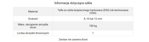 – Maks. obciążenie skrzydła drzwi 100 kg