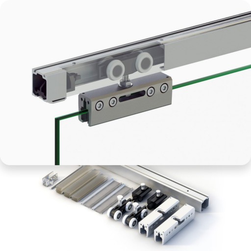 –Wózki wyposażono w łożyska kulkowe o najwyższej wytrzymałości, które zapewniają bezawaryjną pracę do 100000 cykli otwierania i zamykania drzwi o wadze do 100 kg