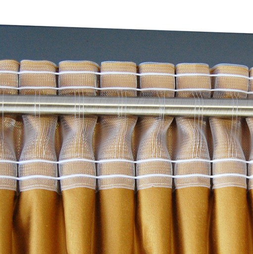 Taśma marszcząca do firan lub zasłon z tunelem żyłkowym do zakładania na rurkę karnisza.