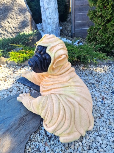 Figury malowane sa farbami odpornymi na warunki atmosferyczne dzięki czemu w ogrodzie mogą stać cały rok.