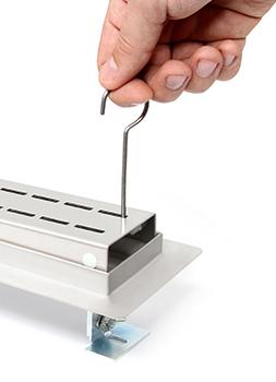 Wykonanie nóżek pozwala na stabilne osadzenie odpływu, w odróżnieniu od powszechnie spotykanych nóżek okrągłych, wykonanych z plastiku. Zakres regulacji zawiera się w przedziale od 52 do 84 mm, co pozwala na bardzo dokładne wypoziomowanie i zamocowanie odpływu.