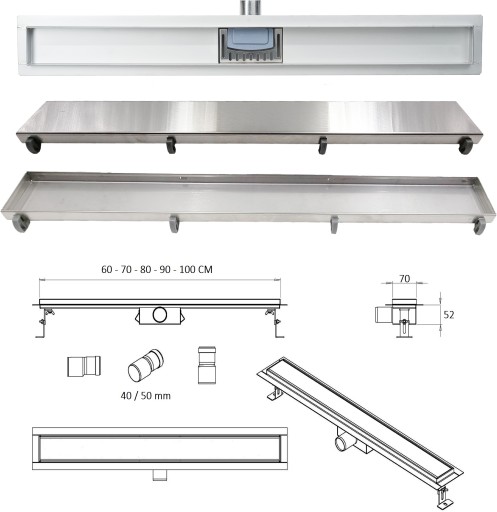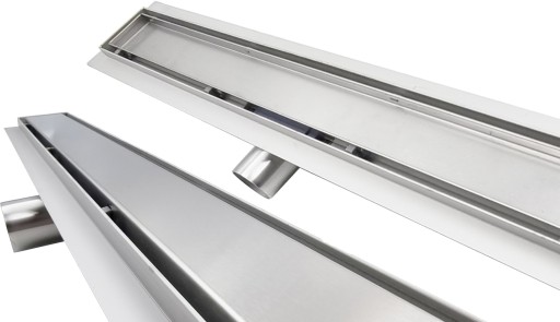 Odpływ liniowy SANITLINE 2w1 do wypełnienia płytką lub po odwróceniu gładki ( stal szczotkowana ) syfon niski wysokość 52mm