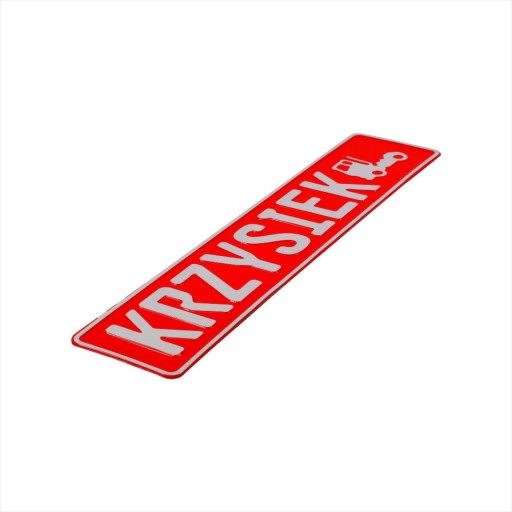 - Tłoczenia na tablicy w ofercie: KRZYSIEK (tir) w układzie przedstawionym na zdjęciu przedmiotu w ofercie.