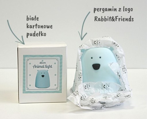 Każda z lampek ma swoje własne, kartonowe pudełeczko i owinięta jest w pergamin z logo Rabbit&Friends.