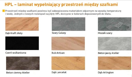 Elementem uzupełniającym kolekcję są blaty dostępne w 11 kolorach i okładziny ścienne HPL w kolorach dopasowanych do blatów.