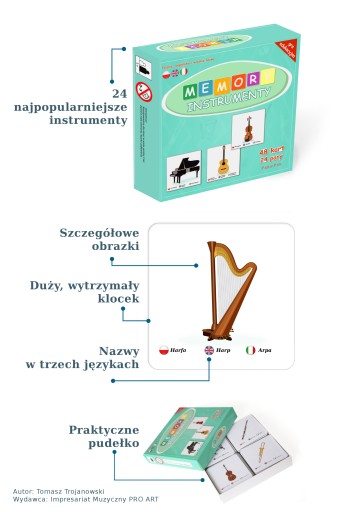 48 kart z 24 instrumentami to doskonały sposób na poznanie klasycznych instrumentów muzycznych.