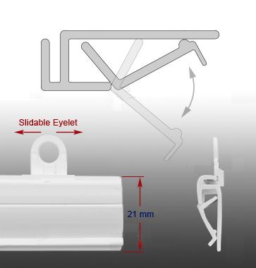 W komplecie: 2 listwy zaciskowe pcw, 2 zawieszki na górnej listwie