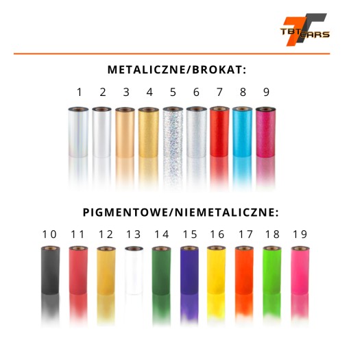 - wybierz kolor napisów / tłoczeń od 1 do 19