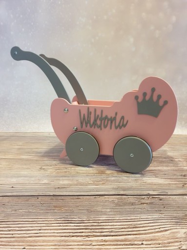 Wózek kolor różowy+ szare dodatki + korona + personalizacja
