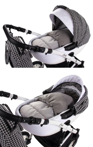 - Nowoczesny wzór śpiworka zaprojektowany został z przeznaczeniem do wózka w wersji gondolowej, spacerowej, fotelika samochodowego oraz sanek