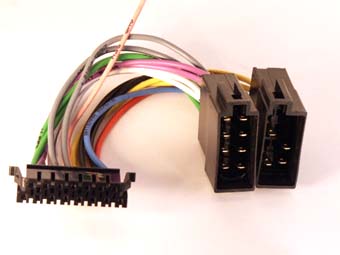 Kostka posiada 2 rzędy - 8 pinów w jednym, 9 pinów w drugim, z drugiej strony standartowe złącze ISO.