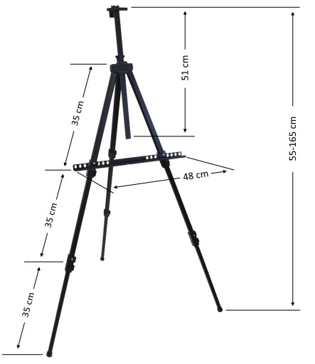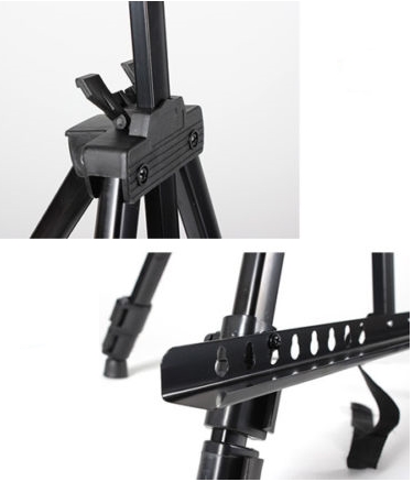 Rozstaw regulowany dzięki wycięciom w dolnej półce sztalugi.