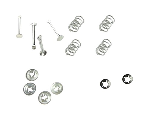 Prowadzę hurtownię motoryzacyjną oraz sprzedaż wysyłkową. Przedstawiam elementy montażowe układu hamulcowego. Wytwarzane są przez krajową firmę i charakteryzują się wysoką jakością materiału i solidnym wykonaniem. Prezentowany komplet zawiera stalowe, ocynkowane bolce (gwoździe, sworznie, nity), sprężynki, miski oraz podkładki regulujące. Przeznaczone są do bębnów i mają zastosowanie na dwa koła (system Opel, rozstaw 200x46). Zestaw mocuje i zabezpiecza szczęki hamulca tylnego, we wszystkich poniższych samochodach: