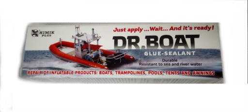 3. Dr. Boat (nr. aukcji: 7302647975) - ten klej pasuje dla przyklejenia różnych akcesoriów przy eksploatacji pontonu od -20 do +80 C. Również pasuje do naprawy z użyciem łat i bez użycia łat - dla latania dziury wystarczy posmarować uszkodzone miejsce.
