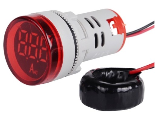 Miernik cyfrowy LED amperomierz okrągły 0-100A czerwony o średnicy 28mm.