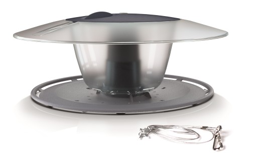 Karmnik dla ptaków z dużym pojemnikiem na ziarno różnej wielkości. Pochylony, okrągły daszek zabezpiecza pokarm przed wszelkimi opadami. Można go zawiesić na drzewie lub przy pomocy plastikowej opaski zaciskowej przytwierdzić do balustrady czy gałęzi. Konstrukcja pozwala również nasadzić go na palik.Wyposażony w stalową linkę z karabińczykiem do zawieszenia.Dzięki zdejmowanej pokrywie w prosty i szybki sposób można uzupełnić pokarm dla ptaków.