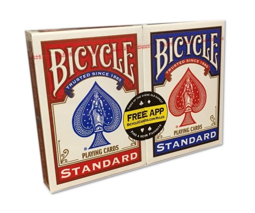 Do zaoferowania mamy najwyższej jakości podwójny zestaw kart do gry w pokera - o wzorze Standard Index BICYCLE. Karty wyprodukowane przez Amerykańską firmę U.S. Playing Card Company. Karty są wykonane z najlepszych kompozytów. Staranne wykonanie i świetna jakość zapewnia maksymalny komfort podczas gry. Dokładnie takim modelem Standard Index gra się w największych turniejach pokerowych, czy brydżowych. W zestawie znajdują się dwie talie kart.