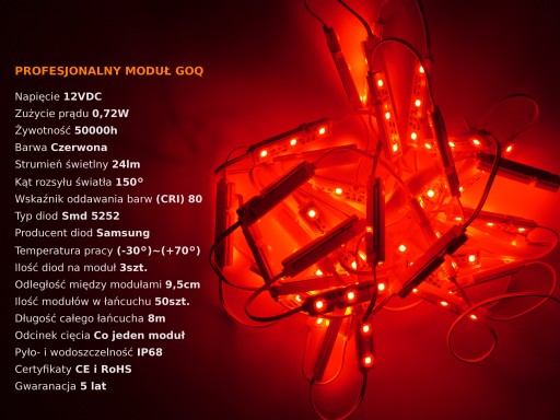 СВЕТОДИОДНЫЙ МОДУЛЬ GOQ CHIP SAMSUNG IP68 КРАСНЫЙ 0,72 Вт