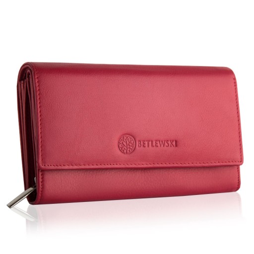 Portfel damski skórzany Betlewski czerwony premium RFID pudełko na prezent