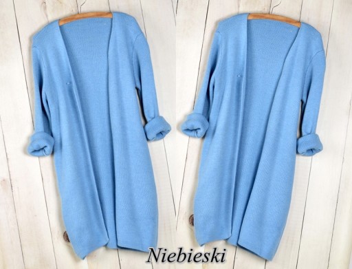 Wyjątkowy sweter/narzutka na chłodne dni, posiada długi rękaw, nie jest zapinany.