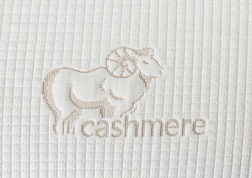 Pokrowiec materacowy "CASHMERE" wykonany z elastycznej, rozciągliwej tkaniny materacowej wysokiej jakości o dużej gramaturze (aż 350 g/m2 + owata). Materiał posiada motywy z nazwą tkaniny oraz kozami kaszmirskimi posiadającymi najdelikatniejszą wełnę. Produkty tworzone z tej tkaniny cechuje niezwykła delikatność oraz właściwości termoregulacyjne. Są to niezwykle istotne właściwości w branży materacowej, dzięki którym możemy zaoferować jeden z najdelikatniejszych i najprzyjemniejszych w użytkowaniu pokrowców materacowych. Całość została przepikowana z użyciem specjalnego włókna klimatyzującego.