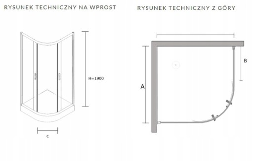 - Wymiary kabiny: 90 x 90 x 190 cm (wysokość z brodzikiem 206 cm)