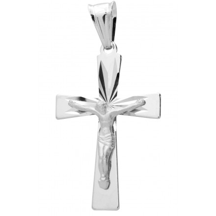 Krzyżyk srebrny z pasyjką, zdobiony diamentowaniem.