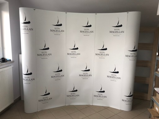 - składaną ściankę reklamową łukową o wymiarze 320 centymetrów szerokości i 230 centymetrów wysokości. Wykonana jest z aluminium anodowanego (jest odporne na korozję) i tworzywa sztucznego.