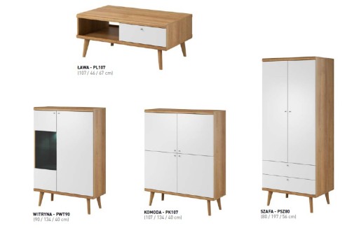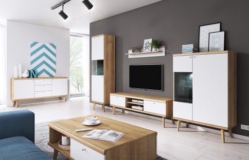 Znajdujące się w tej kolekcji meble mają przepiękny, dopracowany wygląd: biel świetnie uzupełnia się w nich z dębem Riviera. Jak zwykle w przypadku mebli systemowych, meble z kolekcji OMIRO można kupować pojedynczo, jednak najlepszy efekt uda się osiągnąć kupując całą kolekcję. W ten sposób zapewniamy sobie stylistyczną spójność wystroju oraz łatwość utrzymania porządku w salonie. Dzięki temu zestawowi na pewno nie zabraknie bowiem na pewno miejsca na ceramikę, książki czy ubrania. Dla miłośników schludnego życia!