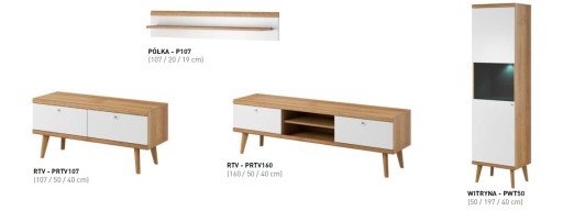 RTV107 wykonana z wysokiej jakości płyty laminowanej o grubości 16mm. Całość oklejona okleiną typu ABS. Listwy wykańczające wykonane z płyty MDF. Uroku całości dodają nóżki wykonane z drewna. Mebel wspaniale pasuje do każdego pomieszczenia.