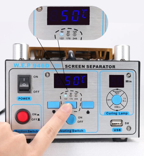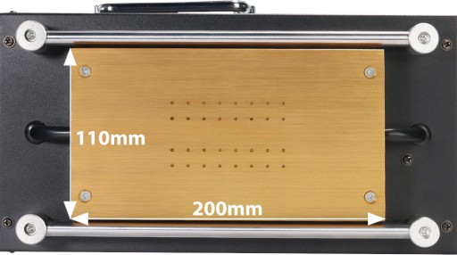 Powierzchnia grzewcza 200x100mm umożliwia prace z dużymi ekranami LCD, a precyzyjne kontrola parametrów pracy uniemożliwia przegrzanie, zniszczenie naprawianych ekranów LCD