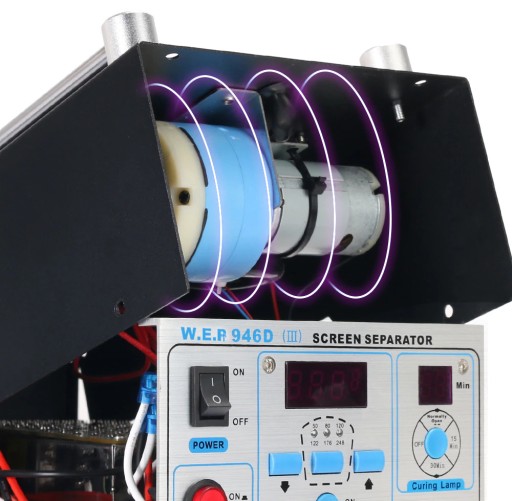 - Wbudowana wydajna pompa próżniowa do mocowania ekranów, nie wymaga używania specjalnych docisków