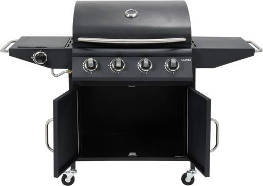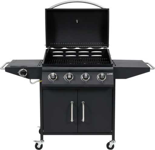 Grill gazowy marki LUND to wielofunkcyjny sprzęt, który umożliwi przygotowanie aromatycznych grilowanych potraw zarówno podczas imprez plenerowych jak i w zaciszu przydomowego ogrodu. Grill wyposażony został w 4 palniki główne oraz palnik boczny umożliwiający gotowanie. Duża szafka pomieści wszystkie niezbędne akcesoria i przyprawy.