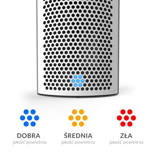 Urządzenie sygnalizuje jakość powietrza poprzez kolor widoczny na przednim panelu: