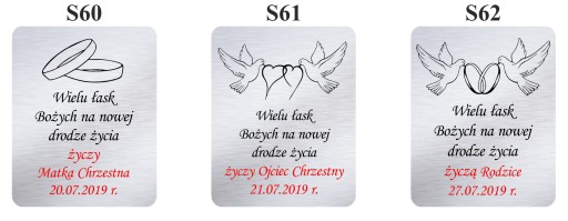 - Przygotuj treść lub znajdź odpowiednią dedykację poniżej i zanotuj numer wzoru (np. S64, K15 czy C32)