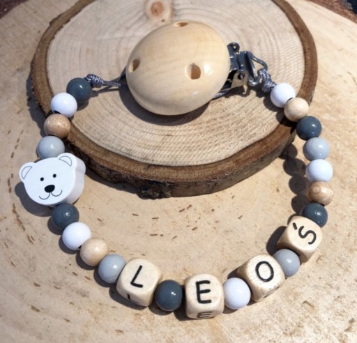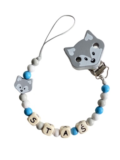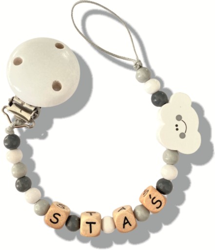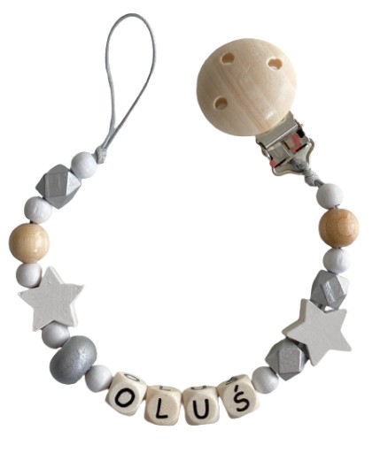 Drewniana spersonalizowana zawieszka do smoczków i gryzaków, świetnie sprawdzi się w domu i na spacerze, pozwoli zapobiec zgubieniu smoczka, gryzaka a nawet małego przyjaciela naszej pociechy.