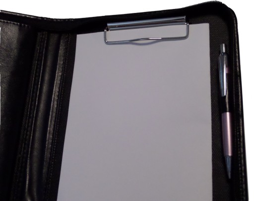 Dodatkowo aktówka wyposażona jest w klips na kartki A5.