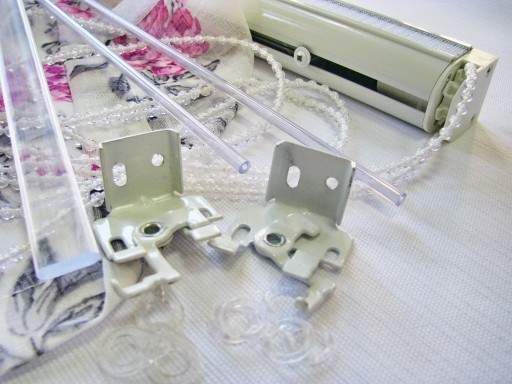 - pręty usztywniające 4 mm, transparentne, 5 sztuk docięte na wymiar ( przy dłuższych roletach można dokupić pręty na osobnej aukcji)