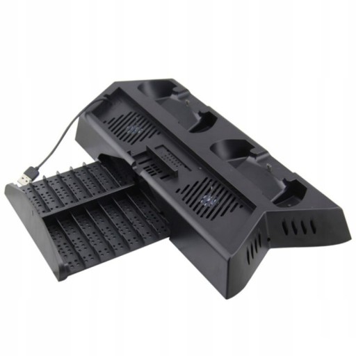 Podstawka chłodząca do PlayStation 4, PlayStation 4 Slim i PlayStation 4 PRO ze stacją dokującą do 2 padów i stojakiem na 14 gier.