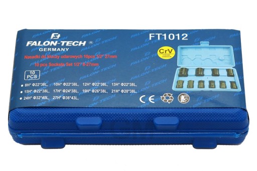 - Zawiera sześciokątne nasadki udarowe w popularnych rozmiarach od 8 do 27 mm.