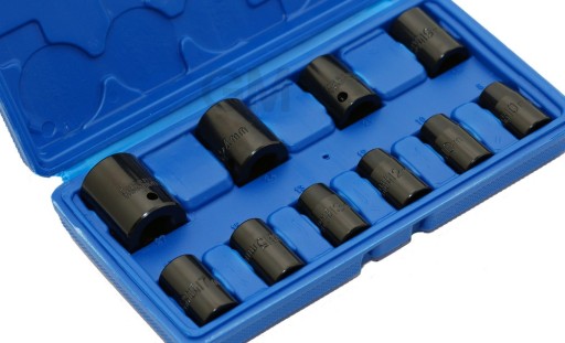 - Komplet sześciokątnych nasadek udarowych 1/2" 8-27mm przeznaczony do kluczy pneumatycznych oraz elektrycznych z udarem.