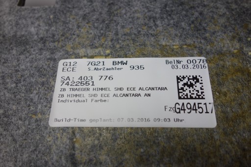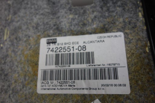 ОТДЕЛКА ПОТОЛКА BMW G12 ЛЮК КРЫШИ АЛЬКАНТАРА