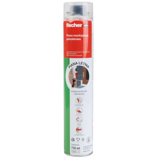 Piana pistoletowa Fischer Premium PUP 750 B3 przeznaczona jest do wypełniania, izolacji i izolacji złączy okiennych oraz wypełniania szczelin łączących ościeżnic drzwiowych, elementów gotowych, połączeń ścian, przepustów ściennych i wnęk. Pianka pistoletowa charakteryzuje się wysoką izolacyjnością akustyczną spoin. Pianka jest łatwa w dozowaniu, umożliwia łatwe napełnianie i izolację oraz zapewnia optymalne wykorzystanie materiałów. Dozownik beżowy fischer PUP 750 B posiada solidny zawór, który zapewnia maksymalne zabezpieczenie przed zatorami i utratą gazu, na przykład podczas transportu morskiego.