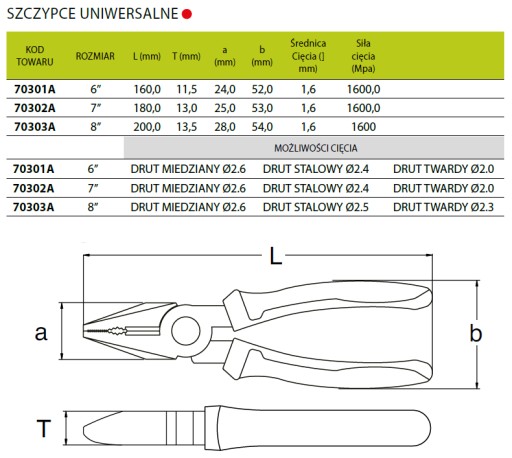 - Specjalna konstrukcja przegubu redukuje wysiłek potrzebny do wykonania prac o 40% w stosunku do standardowych kombinerek.
