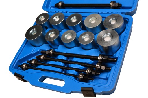 Zestaw służy do montażu i demontażu łożysk w zwrotnicach oraz tulejek zawieszenia.