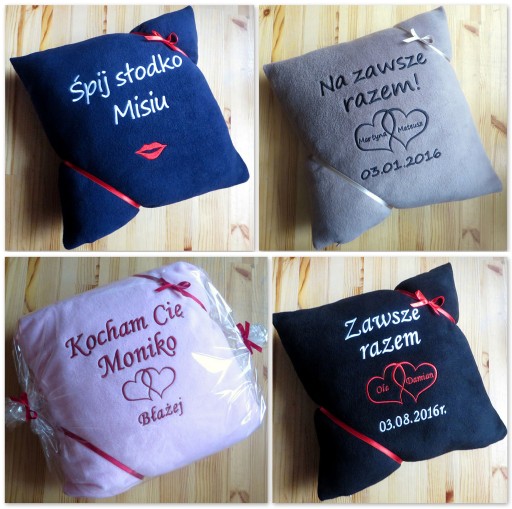 Ta aukcja i cena dotyczą poduszki z Twoim haftem w postaci max. 5 słów (data liczona jako jedno słowo) i 1 motywu graficznego.