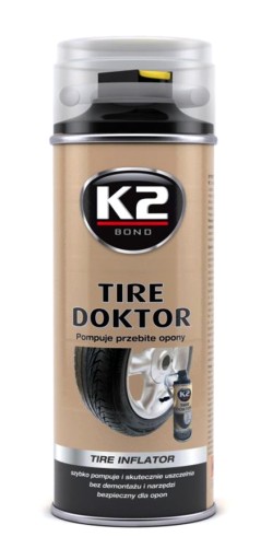 K2 Tire Doktor szybko i skutecznie pompuje i uszczelnia przebite opony - tymczasowa naprawa bez demontażu i użycia narzędzi. Aerozol pompuje oponę, a specjalna lateksowa formuła uszczelnia dziurę. Preparat nie wpływa na wyważenie koła.