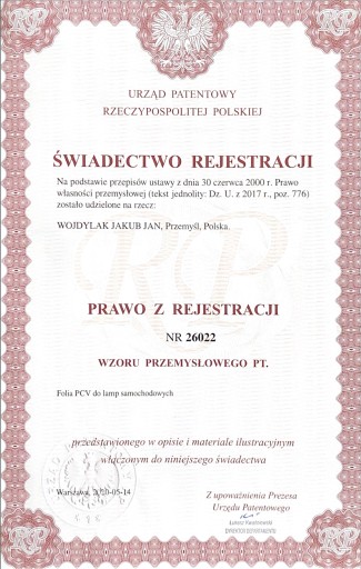 Posiadamy wzór przemysłowy na sprzedawany produkt.