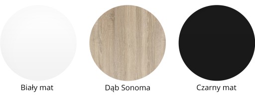 - Front: biały mat, dąb sonoma, czarny mat