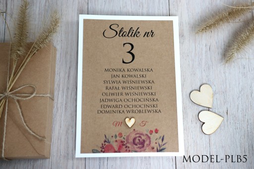 - ROZMIAR: KARTA Z NR STOLIKA I LISTĄ GOŚCI 15 CM X 21 CM